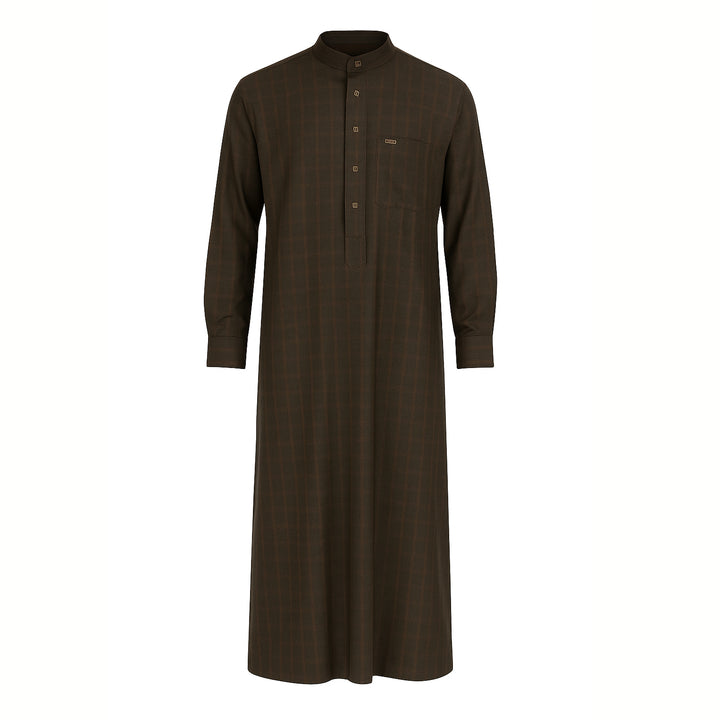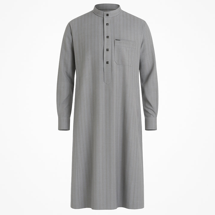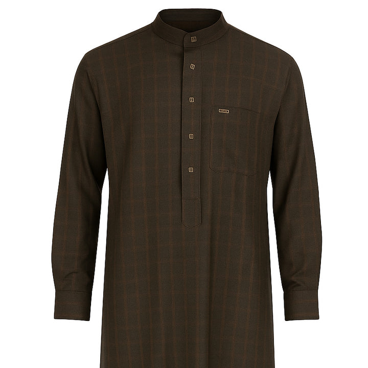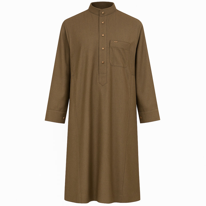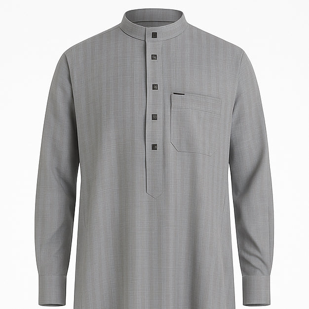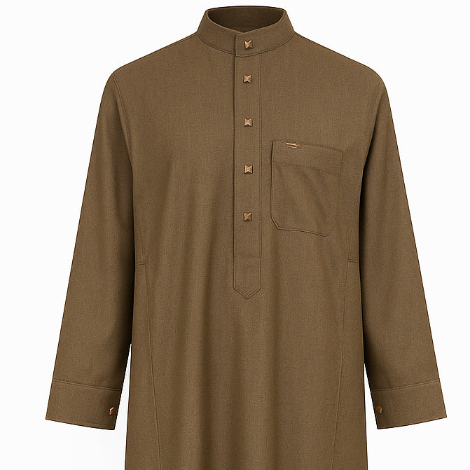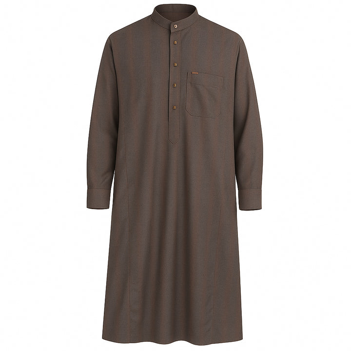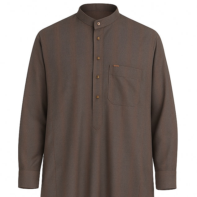 جلابية رجالي شتوي من الوجية مصنوعة من صوف عالي الجودة لتوفير الدفء والأناقة خلال فصل الشتاء. بتصميم عملي يجمع بين الكبك والأسورة، تقدم هذه الجلابية مظهرًا تقليديًا فخمًا مع لمسات عصرية تضيف لمسة تميز. مناسبة للمناسبات الرسمية والاستخدام اليومي، ومتوفرة بمقاسات واسعة تبدأ من 58 حتى 62 لتناسب مختلف الأجسام.