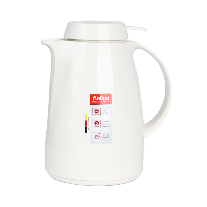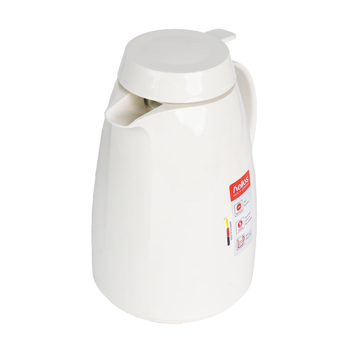 تمتع بالمشروبات الساخنة أو الباردة لفترة طويلة مع ترمس حراري فاكيوم من HELIOS – موديل 001-7204 بسعة 1 لتر، بلونه الأبيض الأنيق.