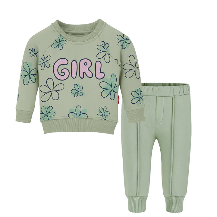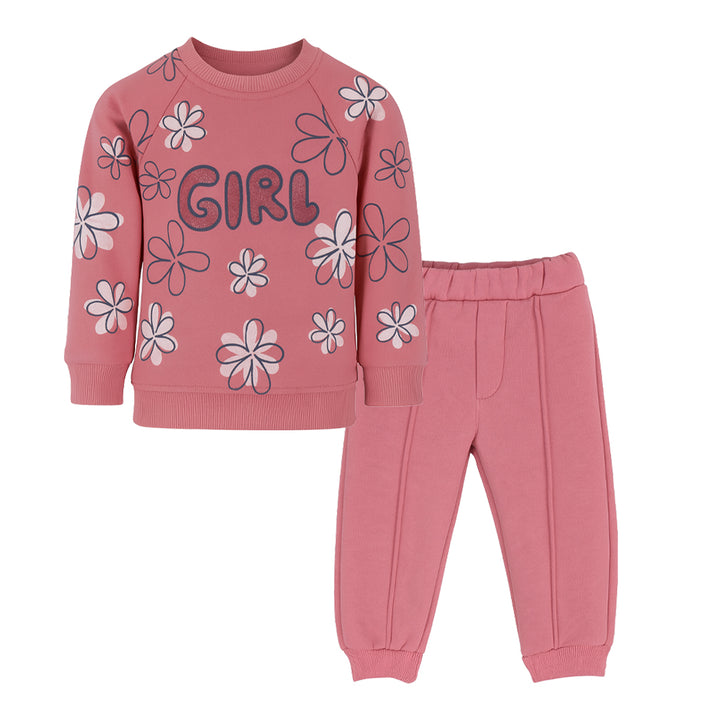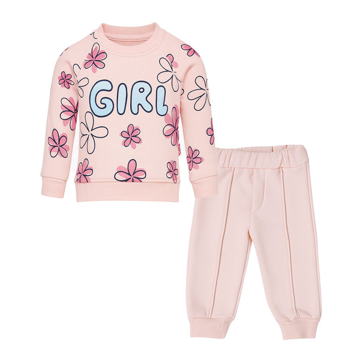 طقم مكون من قطعتين: سويت شيرت + بنطلون مطاطي مريح.