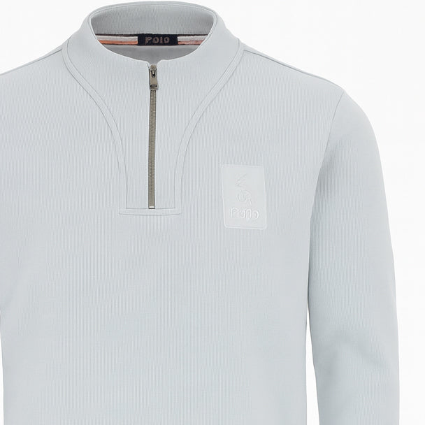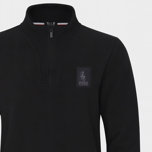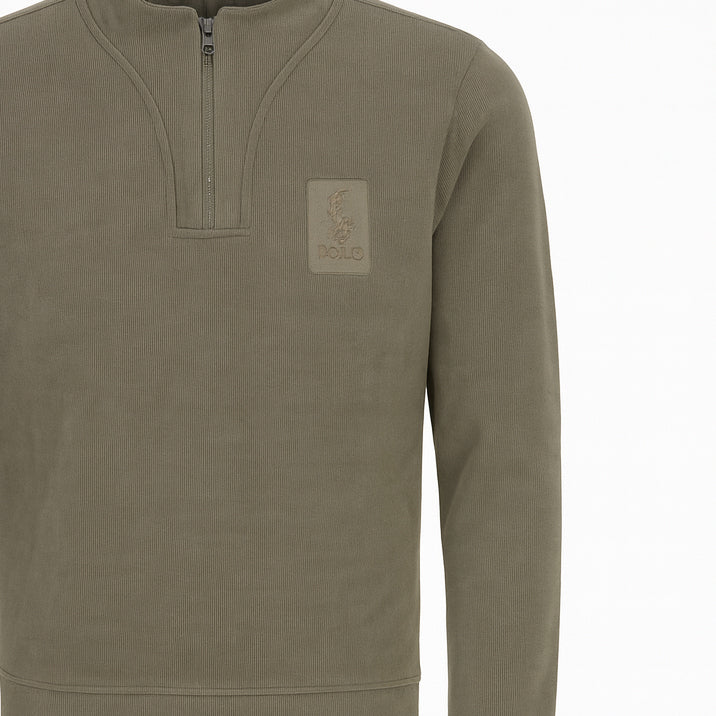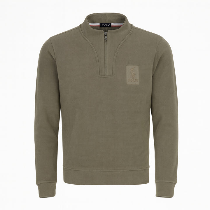 التصميم: ياقة عالية مع سوستة نصفية، مع شعار POLO مطرز على الصدر.