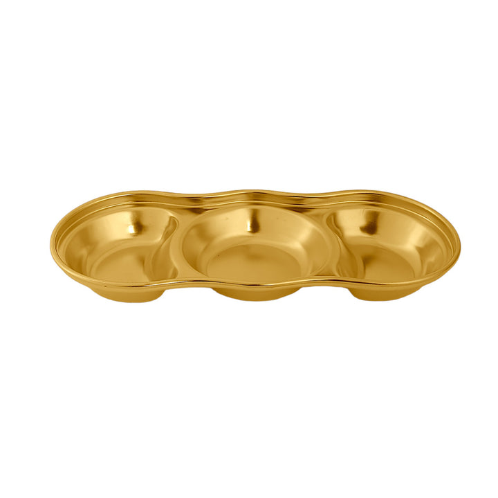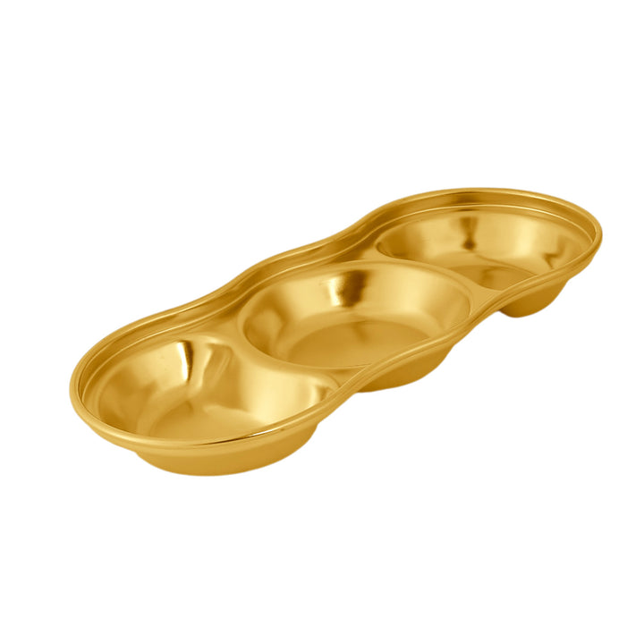 سيرفيس صوص 3 عين ستانلس دهبي دواير موديل 15127 يجمع بين الفخامة والعملية لتقديم الصوصات والزيوت بطريقة منظمة وجذابة. تصميمه العصري بأشكال دائرية وطبقة ذهبية أنيقة يضيف لمسة فاخرة لطاولتك، بينما توفر الثلاثة عيون إمكانية تقديم ثلاثة أنواع مختلفة من الصوصات أو الزيوت في وقت واحد، مما يجعله مثالياً للاستخدام اليومي أو في المناسبات الخاصة.