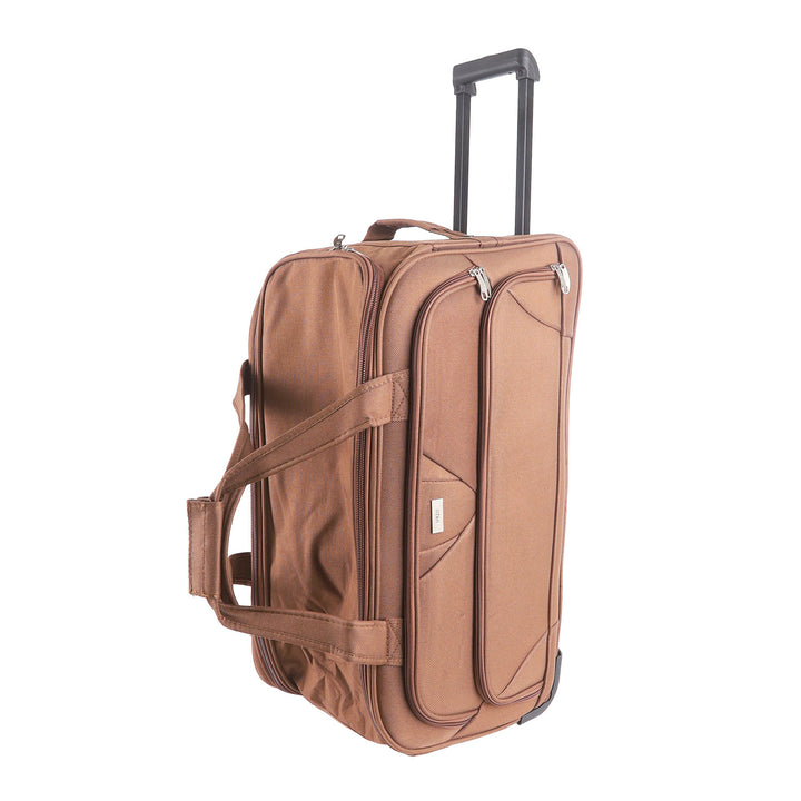 شنطة هاند باج ترولي MRZM مقاس كبير باللون الكافي تجمع بين الأناقة والعملية لتكون رفيقك المثالي أثناء السفر والتنقل اليومي. تصميمها المتين يوفر مساحة واسعة لحمل الملابس والمستلزمات الشخصية، مع عجلات سلسة وحزام ترولي يسهل الحركة، لتجعل رحلاتك القصيرة والطويلة أكثر راحة وتنظيماً.