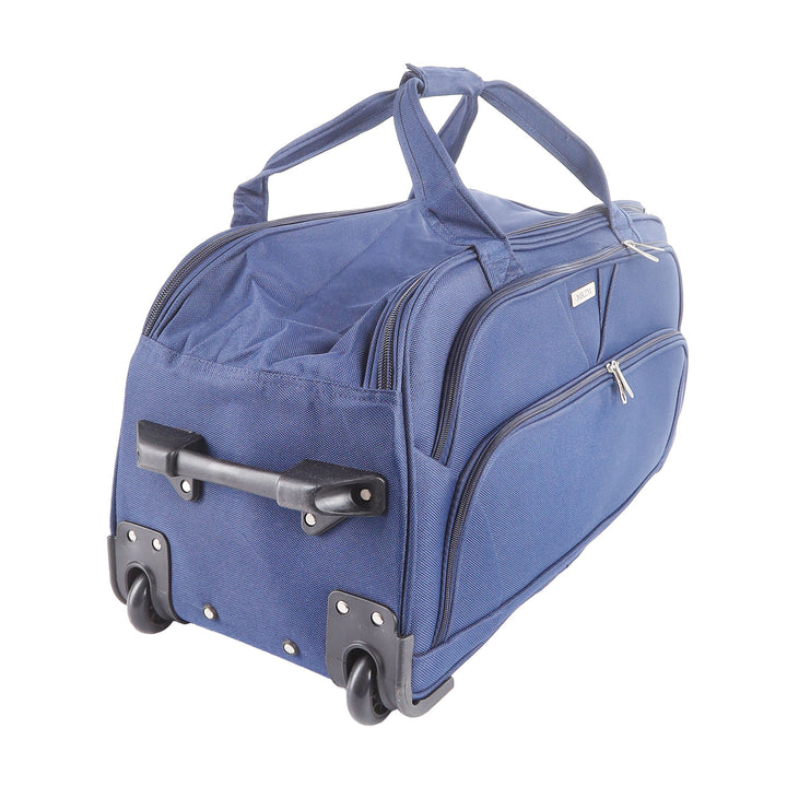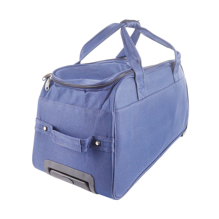شنطة هاند باج ترولي MRZM مقاس كبير باللون الكحلي تجمع بين الأناقة والعملية لتكون رفيقك المثالي في السفر والتنقل اليومي. تصميمها العملي يوفر مساحة واسعة لحمل الملابس والمستلزمات الشخصية، مع عجلات سلسة وحزام ترولي يسهل الحركة، مما يجعلها الخيار الأمثل للرحلات القصيرة والطويلة.