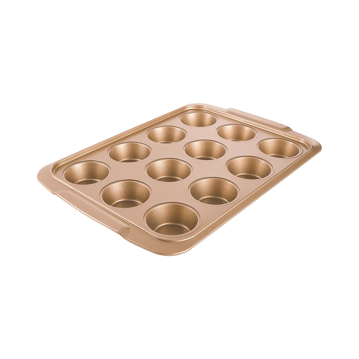 أبهري ضيوفك بإطلالة احترافية للحلويات مع قالب كيك 12 عين ذهبي، المصنوع من خامة عالية الجودة ومطلية بطبقة غير لاصقة لتضمن لك سهولة في الخَبز والتنظيف. تصميمه العملي يساعدك على تحضير ميني كيك، كب كيك، أو معجنات صغيرة بشكل متساوٍ وأنيق.
