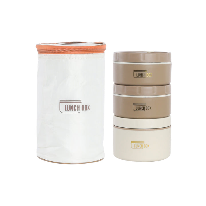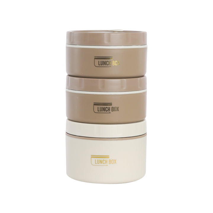 يحتوي على 3 علب لانش بوكس بأحجام مختلفة لحفظ الطعام بأشكاله المتنوعة.