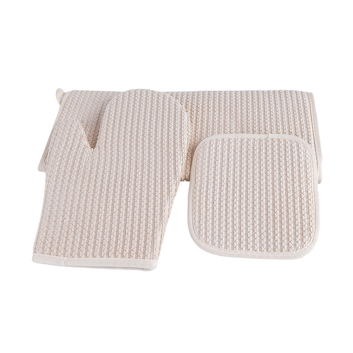 محتويات الطقم: مفرش حوض + جوانتي عدد 2 (إجمالي 3 قطع).