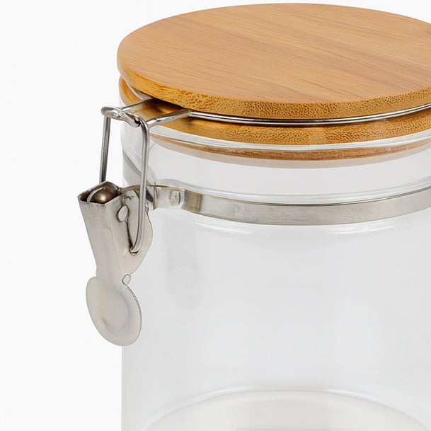 نظّمي مطبخك بأناقة مع برطمان التوابل الزجاجي موديل 278، المصمم بشكل مدوّر وبحجم صغير مثالي لتخزين التوابل والبهارات. الغطاء الخشبي مع الكلبس المحكم يضيف لمسة جمالية ريفية ويضمن الحفاظ على نضارة المحتوى لفترة أطول.