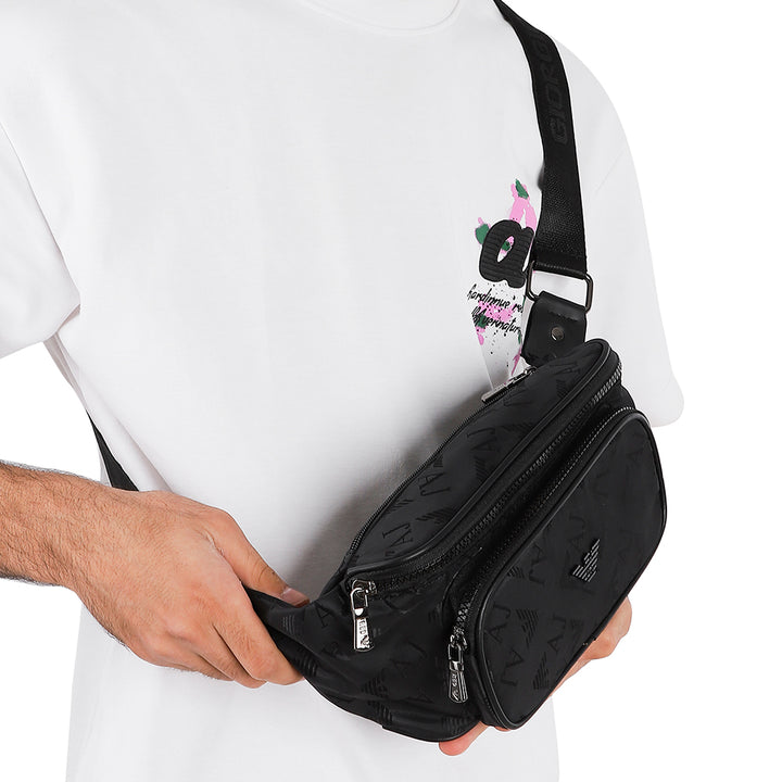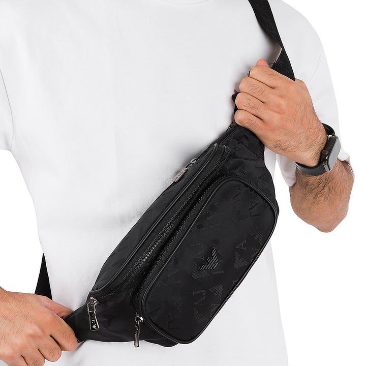 Armani A1008 crossbody bag, made of high-quality materials such as durable fabric and treated leather, a shoulder crossbody bag that combines simplicity and elegance. ● Comes in an elegant black color.