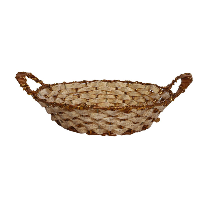 Add a touch of elegance and beauty to your serving with this "Golden Zaaf" bread serving platter. This exquisitely handcrafted bread platter is a piece of art that will adorn your table, adding a touch of sophistication and warmth to it. This platter combines the authenticity of handcrafts with the appeal of a modern golden color, making it ideal for everyday use or special occasions.