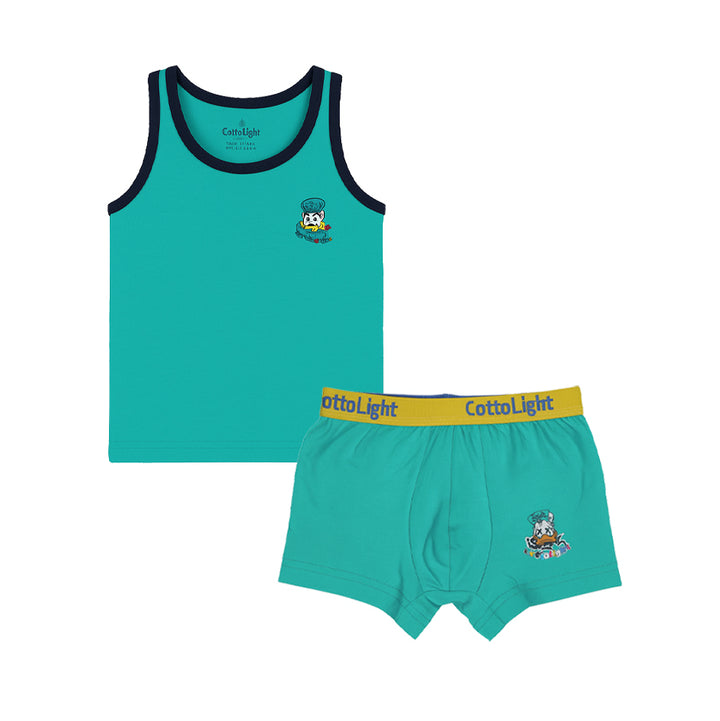 وفّر لطفلك الراحة التامة طوال اليوم مع طقم الملابس الداخلية الأولادي موديل 3500، المصنوع من خامة ليكرا قطولايت الناعمة والمرنة. الطقم مكوّن من حمالة + بوكسر بتصميم عملي ومريح، يناسب الحركة اليومية والنشاط، ومتوفر بمقاسات من 7 إلى 16 سنة.