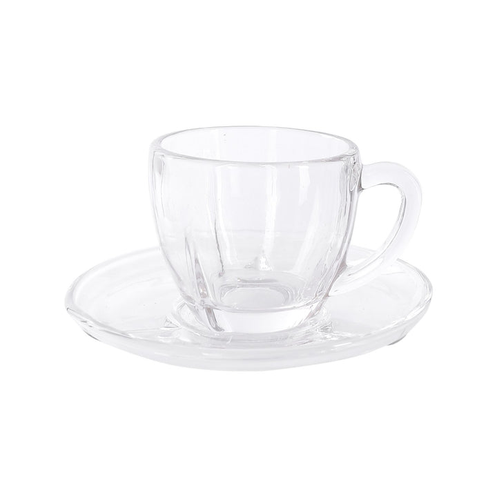 طقم مج قهوة أنيق من CITY GLASS مع طبق متناسق، مصنوع من زجاج مقاوم للكسر والخدش، آمن للثلاجة وسهل الاستخدام في المنزل أو المكتب. مناسب كهدية مميزة للمناسبات.