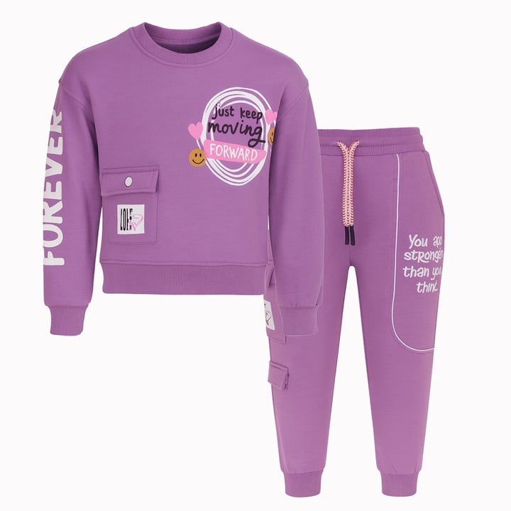 تصميم عصري بياقة دائرية وبنطلون عملي ومريح.
