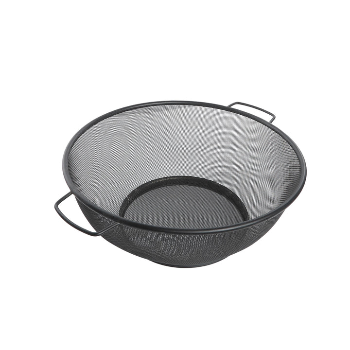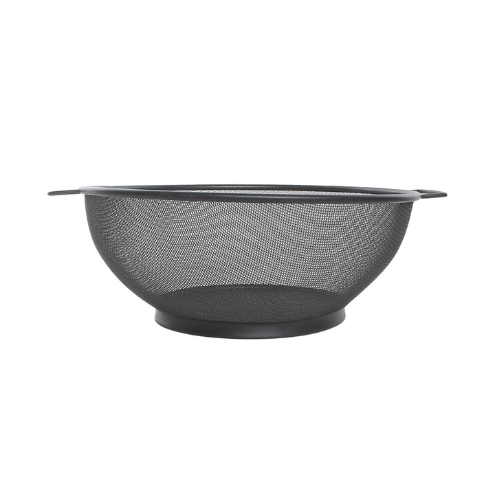 Black coated stainless steel colander - large rectangular, ideal for straining and washing large quantities of food, durable and stylish design for everyday use.