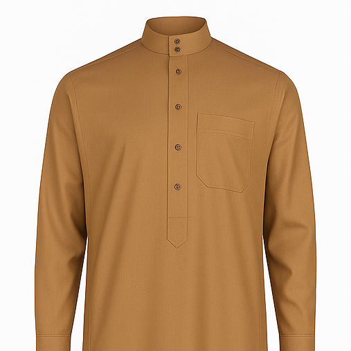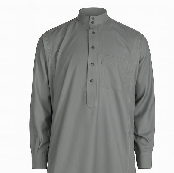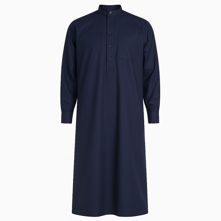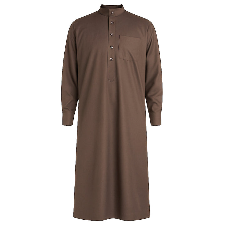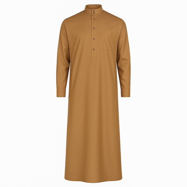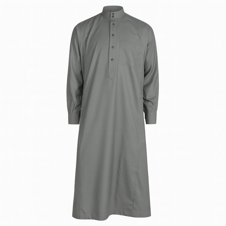 جلابية أجاويد رجالي شتوي سادة – روعة، خامة دافئة وتصميم بسيط أنيق، متوفرة بمقاسات من 56 إلى 64.