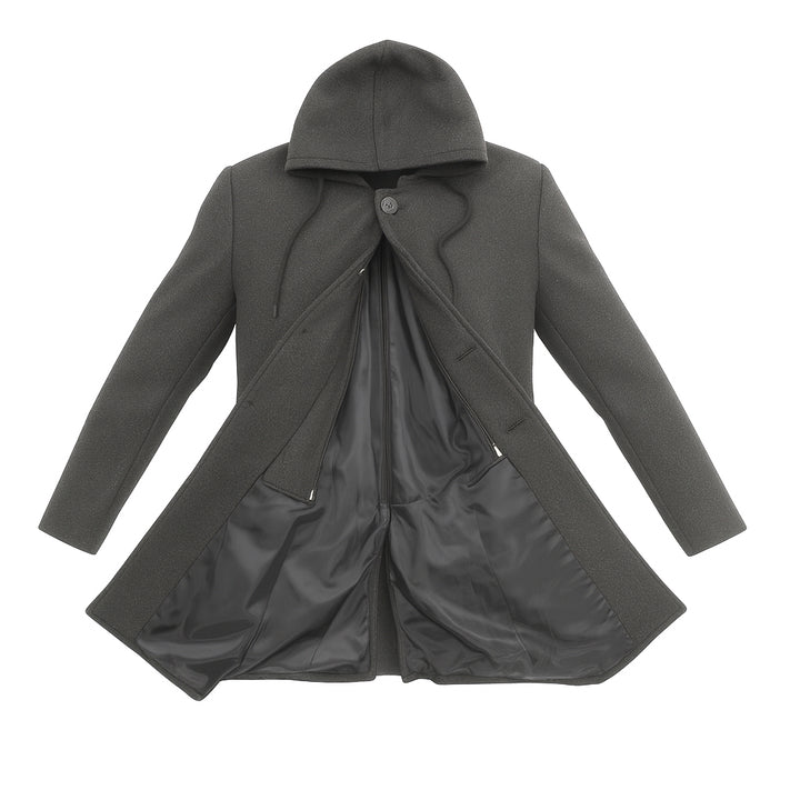 بالطو رجالي شتوي من A.H مصنوع من الصوف الفاخر مع كابتشو، يجمع بين الأناقة والدفء مع حماية إضافية للرأس أثناء الأيام الباردة. تصميم عصري عملي يضمن راحة كاملة ومظهر أنيق، مناسب للاستخدام اليومي والعمل والخروجات الشتوية.