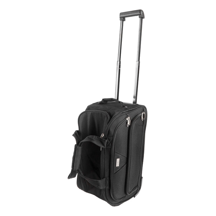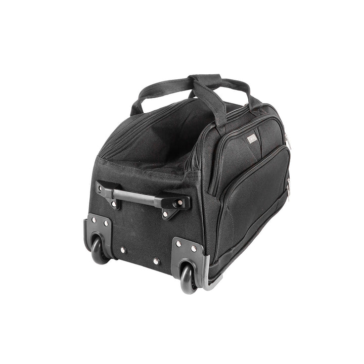 شنطة هاند باج ترولي MRZM مقاس صغير باللون الأسود تجمع بين الأناقة والعملية لتكون رفيقك المثالي في السفر القصير والتنقل اليومي. تصميمها المدمج يوفر مساحة مناسبة لحمل المستلزمات الأساسية، مع عجلات سلسة وحزام ترولي يسهل الحركة، مما يجعلها مثالية للرحلات اليومية والتنقلات القصيرة.