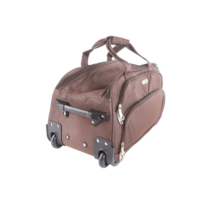 شنطة هاند باج ترولي MRZM مقاس صغير باللون البني تجمع بين الأناقة والعملية لتكون رفيقك المثالي في السفر القصير والتنقل اليومي. تصميمها المدمج يوفر مساحة مناسبة لحمل المستلزمات الأساسية، مع عجلات سلسة وحزام ترولي يسهل الحركة، مما يجعلها مثالية للرحلات اليومية والتنقلات القصيرة.