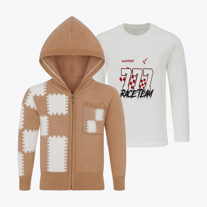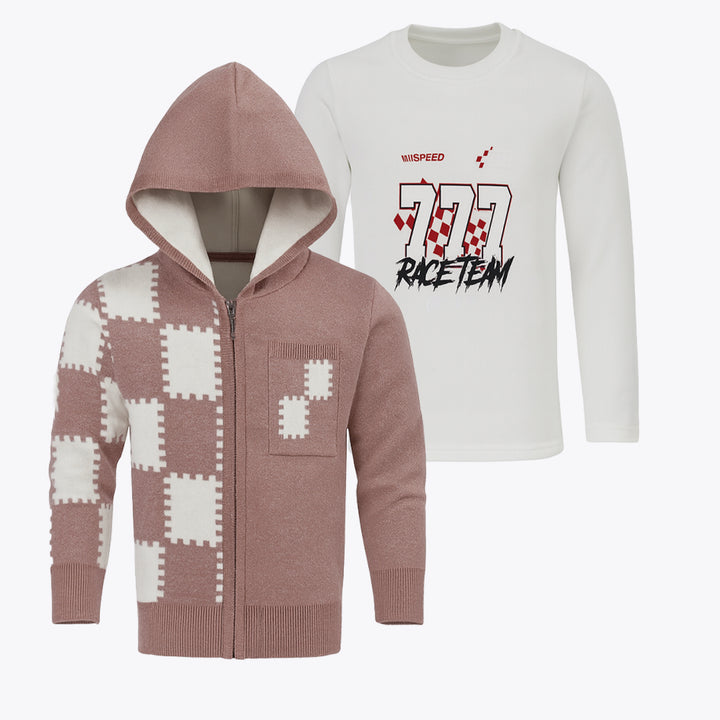سويت شيرت أولادي شتوي توب وان راوند سوستة تريكو موديل 225 طقم مكون من قطعتين بخامة تريكو ناعمة وتصميم أنيق يوفر الدفء والراحة للأطفال من 2 إلى 6 سنوات.