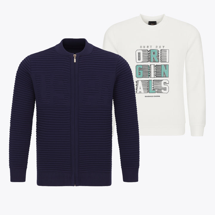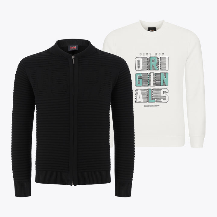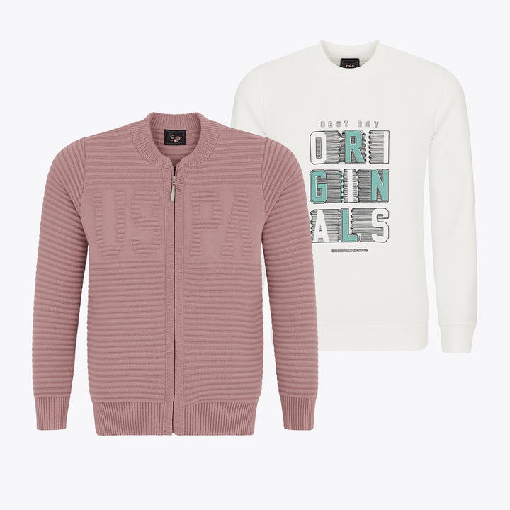 سويت شيرت أولادي شتوي توب وان راوند سوستة تريكو موديل 210 بخامة تريكو ناعمة وتصميم أنيق مكون من قطعتين يمنح طفلك الدفء والراحة في الشتاء. متوفر بمقاسات من 2 إلى 6 سنوات.VVV