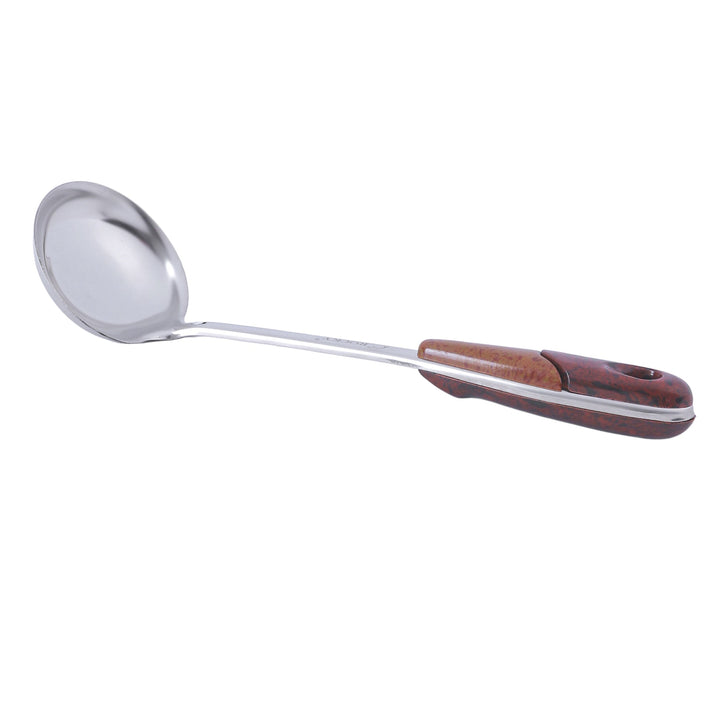 مغرفة ستانلس روكي يد بكاليت موديل 1089202 مصممة لتسهيل تقديم الشوربات، الصوصات، والمشروبات الساخنة بسهولة وأمان. تجمع بين المتانة والجودة العالية للستانلس ستيل مع يد بكاليت مريحة توفر قبضة ثابتة أثناء الاستخدام، مما يجعلها أداة مثالية للمطبخ اليومي والمناسبات الخاصة.