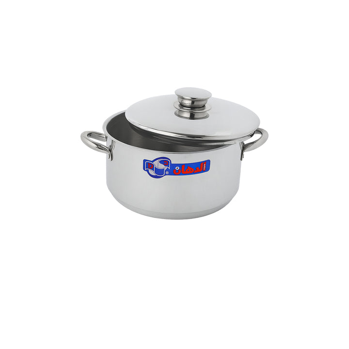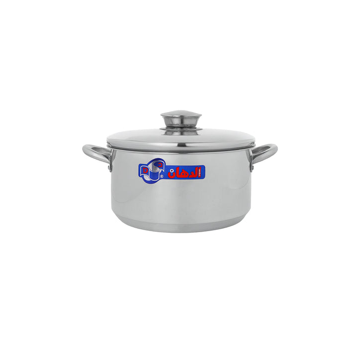حلة يد من الستانلس ستيل متينة وعملية، بتصميم مريح وتوزيع حرارة متساوٍ، مثالية للاستخدام اليومي في المطبخ.