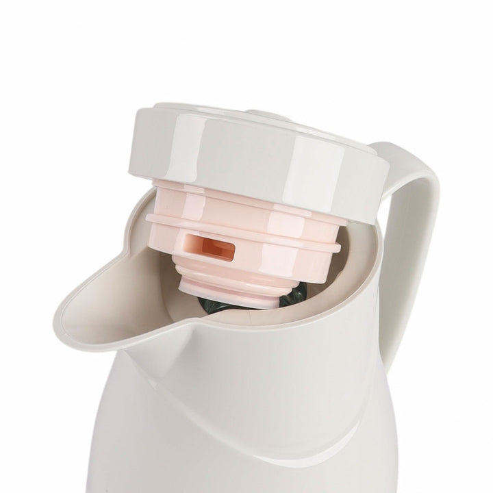 ترمس هوم بلاستيك 1 لتر موديل DA1004 باللون الأبيض، تصميم متين يحافظ على حرارة المشروبات ويصلح للاستخدام اليومي في المنزل أو المكتب.