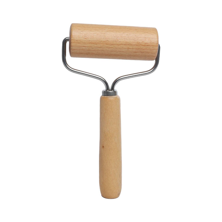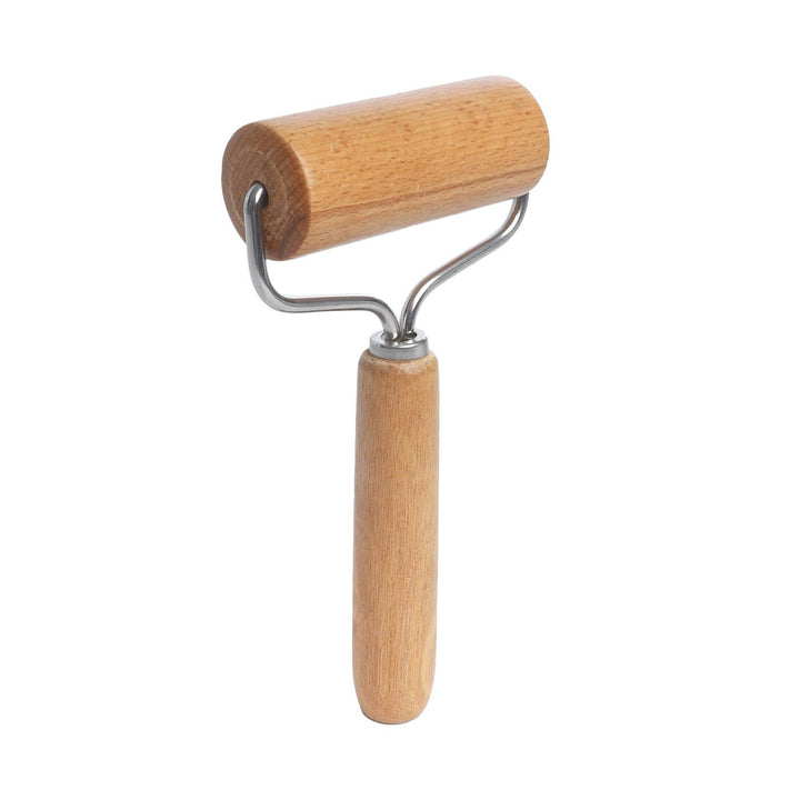 Made of wooden rollers; perfectly balanced for easy and smooth use; easy roller rolls dough directly in the pan to a uniform thickness; larger roller distributes dough evenly; smaller roller smooths edges and sides