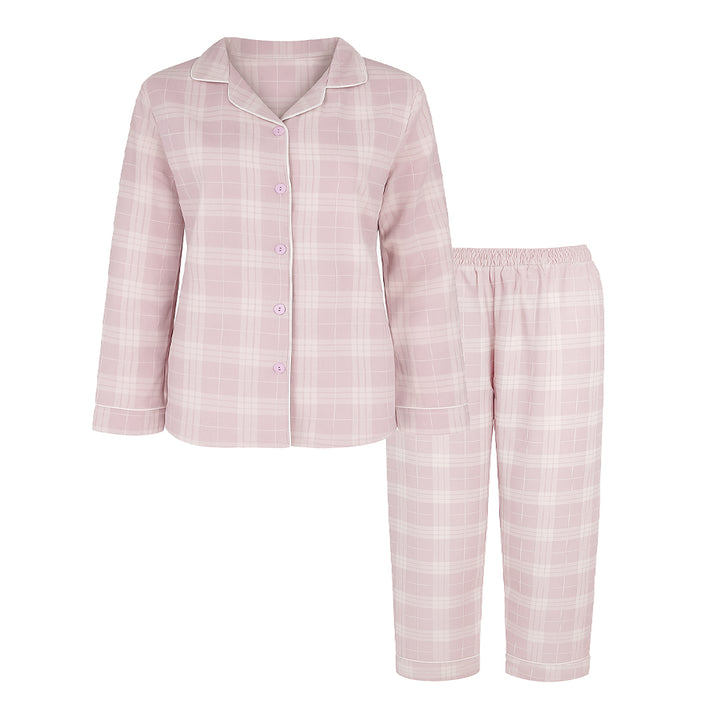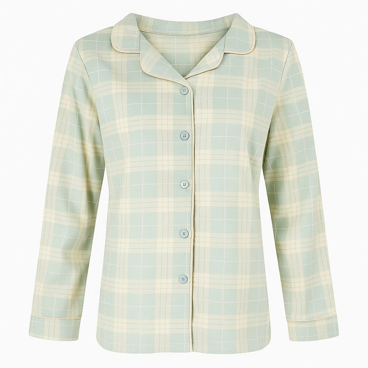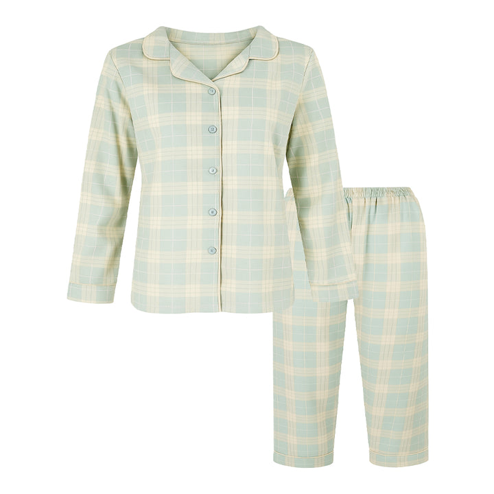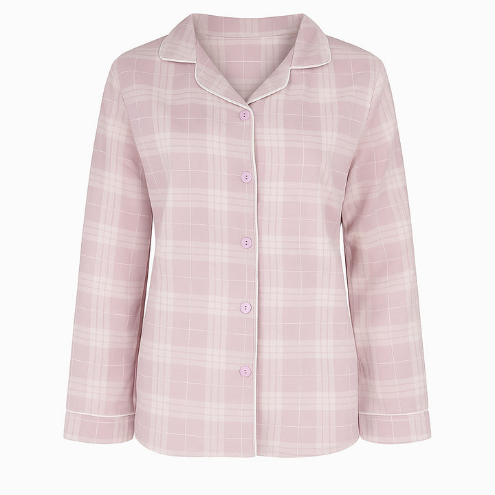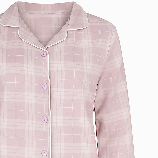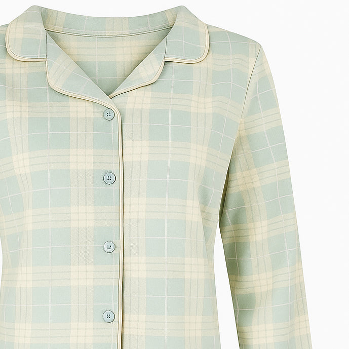 بيجامة حريمي شتوي قطن ريجينا زراير كاروه موديل 777، ناعمة ومريحة بتصميم أنيق، متوفرة بمقاسات L إلى 2XL، توفر دفئًا وأناقة مثالية للاستخدام اليومي في فصل الشتاء.