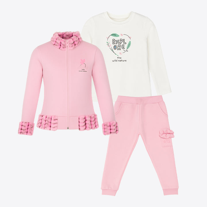 ترنج بناتي شتوي زيزو سوستة موديل 811 بخامة ناعمة ودافئة وتصميم عملي بسوستة أمامية، مكون من جاكيت وبنطلون. مناسب للبنات من عمر 2 إلى 5 سنوات لإطلالة شتوية مريحة وأنيقة.