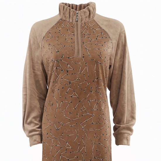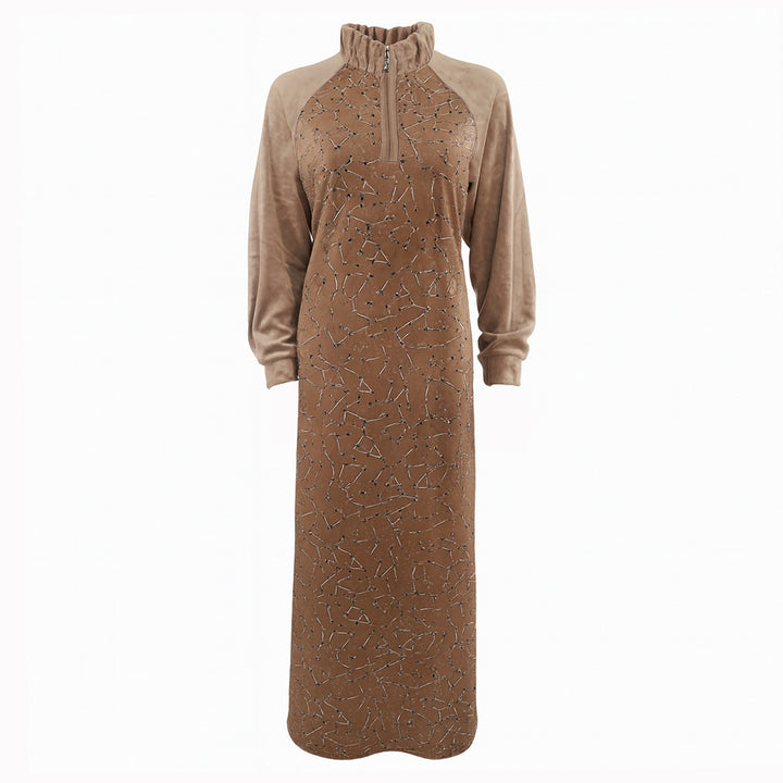 جلابية حريمي شتوي أنيقة مصنوعة من خامة القطيفة الفاخرة لتمنحك إحساسًا فائقًا بالدفء والراحة خلال أيام الشتاء الباردة. تتميز بتصميم عصري جذاب يناسب المرأة العصرية التي تبحث عن الراحة دون التخلي عن الأناقة.