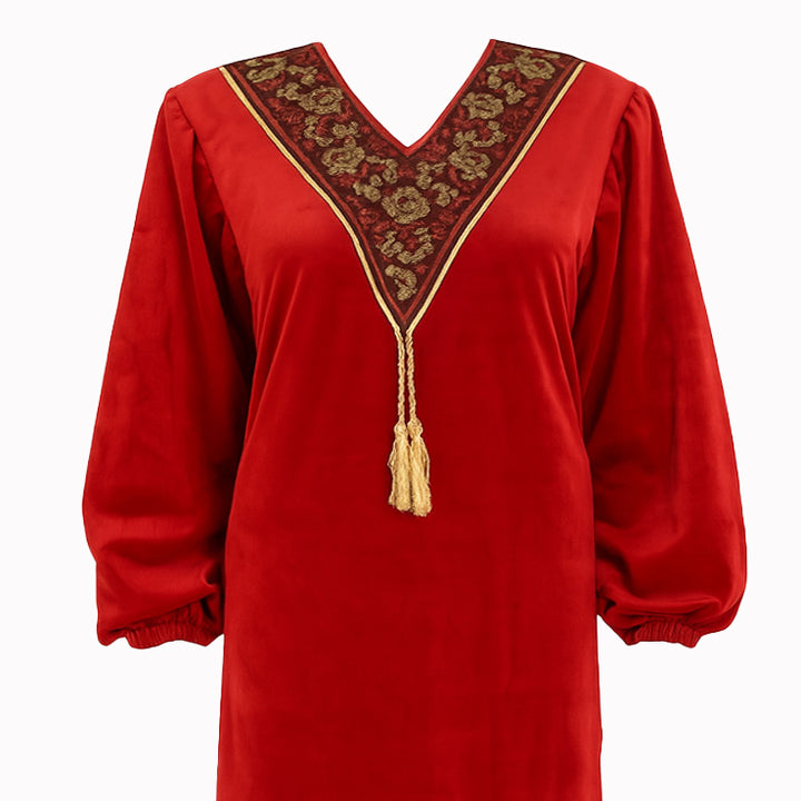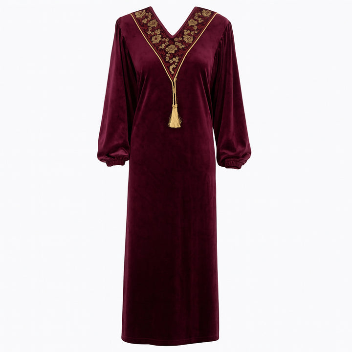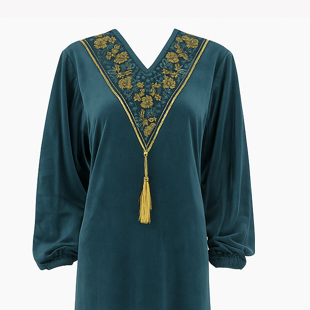 جلابية حريمي شتوي قطيفة ناعمة موديل 401 بمقاسات من L إلى 2XL، تصميم أنيق وخامة دافئة تمنحك راحة وأناقة في فصل الشتاء.