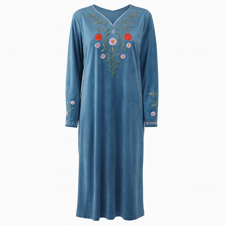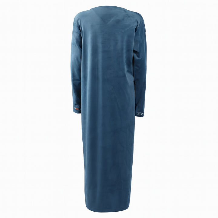 تألّقي بإطلالة شتوية دافئة ومريحة مع جلابية حريمي شتوي قطيفة ريجينا موديل 413، المصنوعة من خامة القطيفة الفاخرة لتمنحك إحساسًا بالدفء والفخامة في آن واحد. بتصميمها الأنيق والبسيط، تعد الخيار المثالي للراحة والأناقة داخل المنزل خلال فصل الشتاء.
