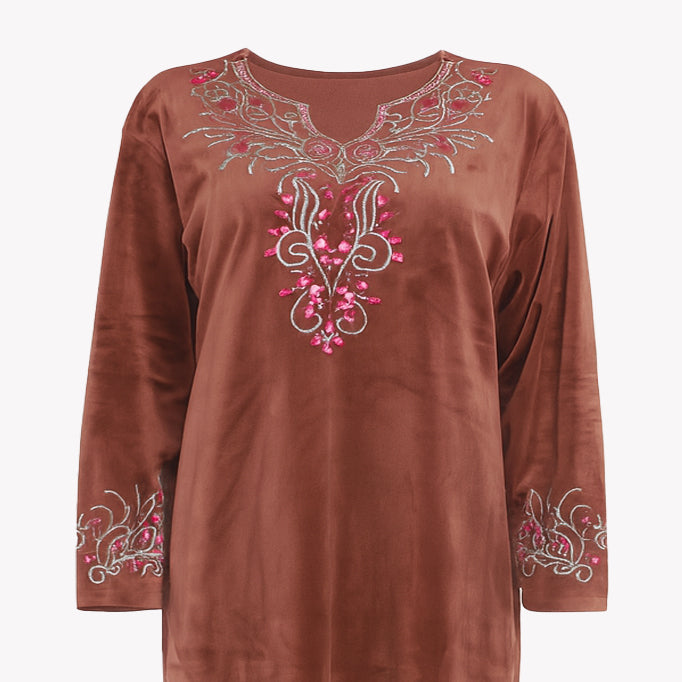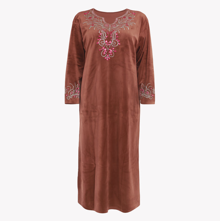 احصلي على إطلالة منزلية أنيقة ودافئة مع جلابية حريمي شتوي قطيفة ريجينا – موديل 409. تجمع بين الراحة والفخامة بفضل خامة القطيفة الناعمة، وتصميمها العصري الذي يناسب ذوق المرأة العصرية في الشتاء. مثالية للاستخدام اليومي داخل المنزل وتمنحك إحساسًا فوريًا بالدفء والنعومة.