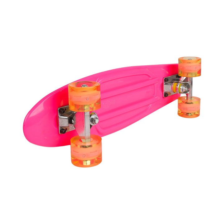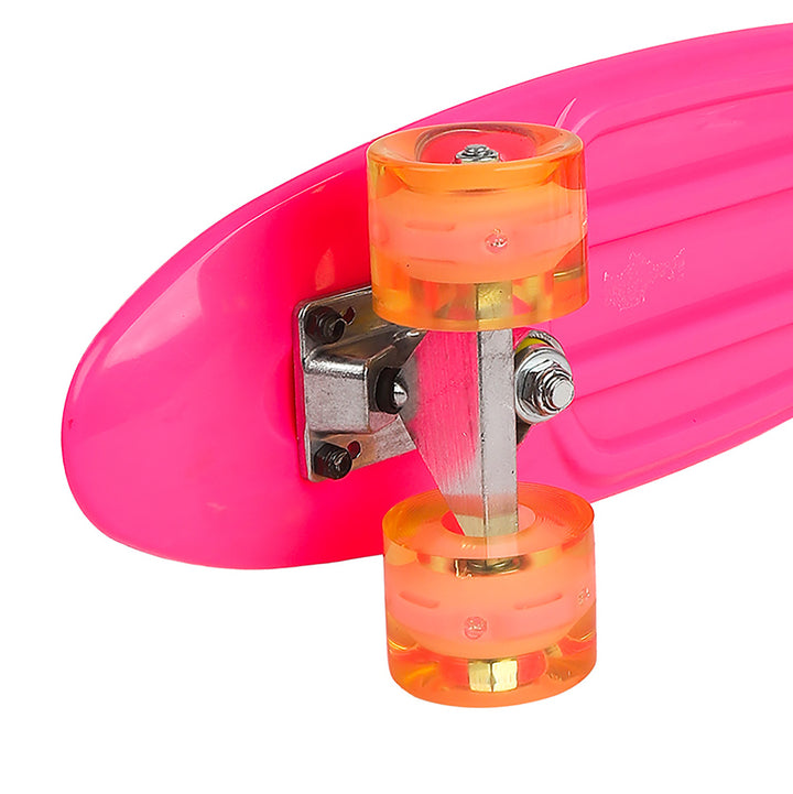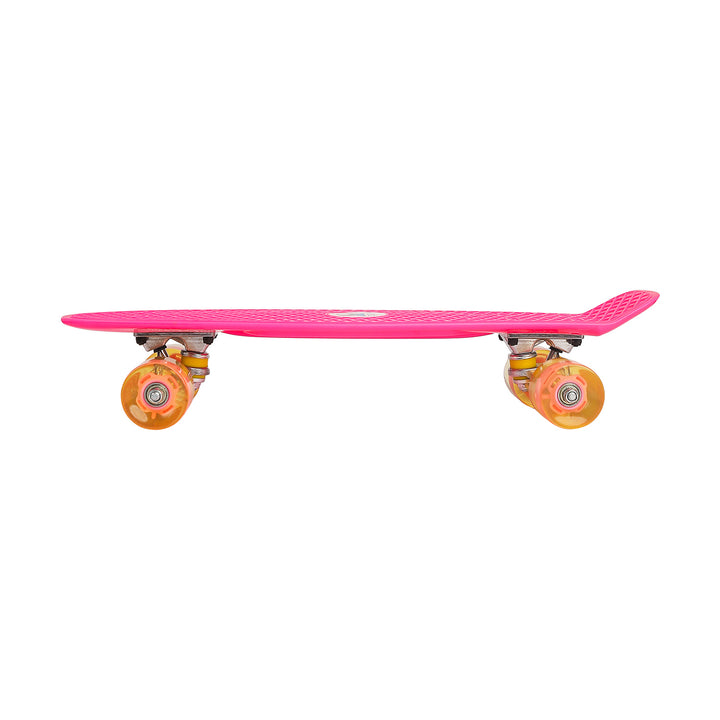 يتميز بلوح قوي مصنوع من البلاستيك المقوى، مزود بـ 4 عجلات عالية الجودة لتوفير توازن وثبات أثناء الاستخدام، مناسب للأطفال والمبتدئين في عالم السكيب بورد.