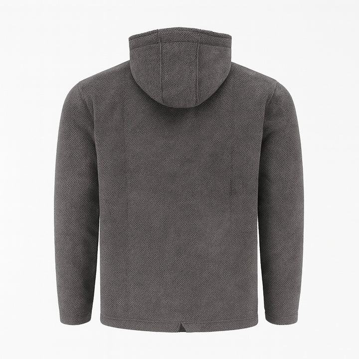 تميّز بإطلالة شتوية دافئة وعصرية مع سويت شيرت التيسير الرجالي المصنوع من خامة بسكوتة عش النمل، التي تجمع بين النعومة والدفء بخفة مثالية. يأتي بتصميم عملي بكابتشو وسوستة أمامية، ليناسب إطلالاتك الكاجوال أو الاستخدام اليومي في الأجواء الباردة.