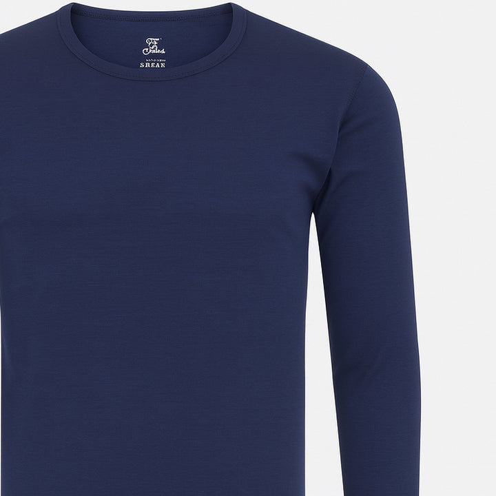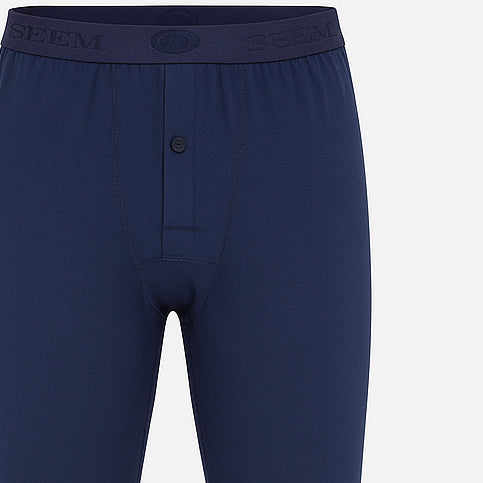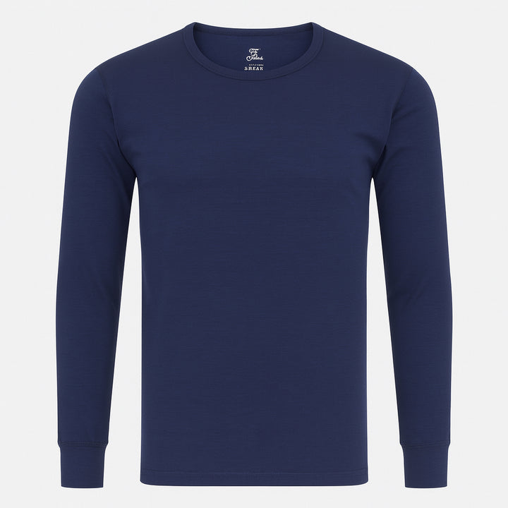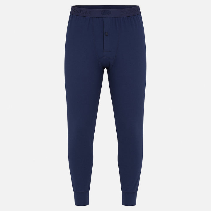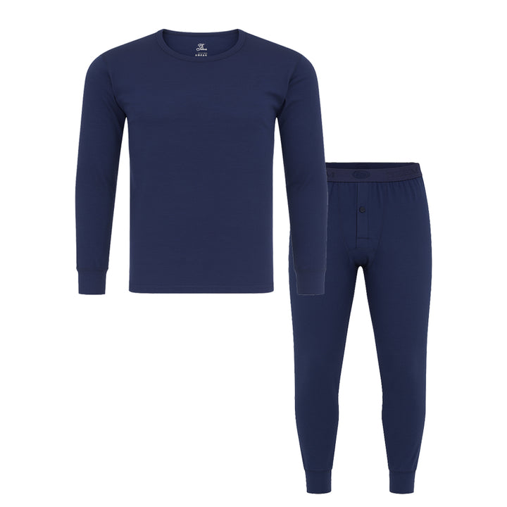 طقم كم وكالسون رجالي شتوي سليم موديل 102L بخامة دافئة ومرنة يوفر راحة وانسيابية تحت الملابس في الشتاء، باللون الكحلي.
