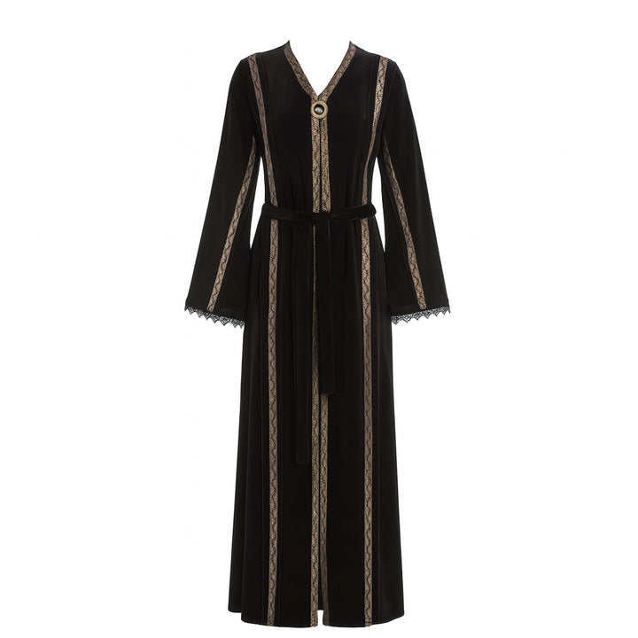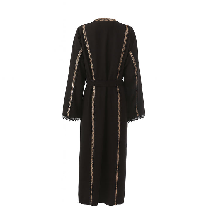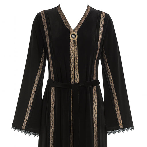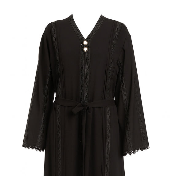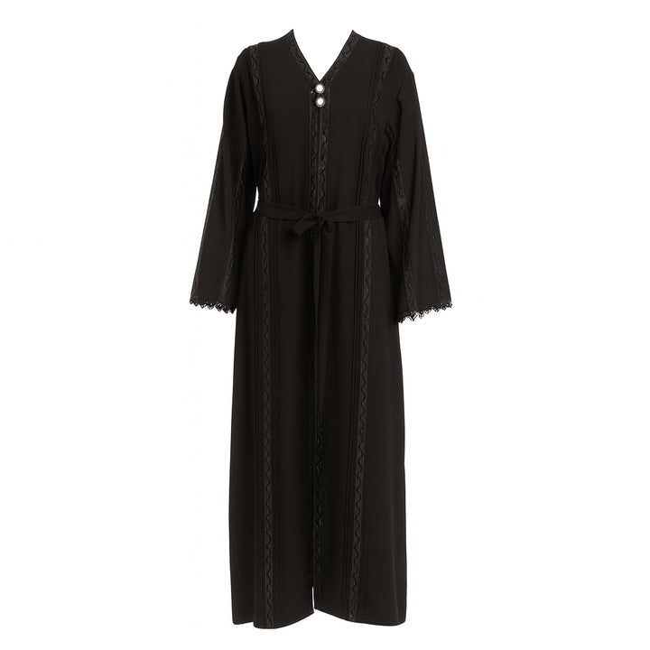 عباية حريمي خروج ندي تطريز موديل 460 بتصميم أنيق وخامة مريحة تناسب المقاسات الكبيرة، متوفرة من 4XL إلى 6XL.