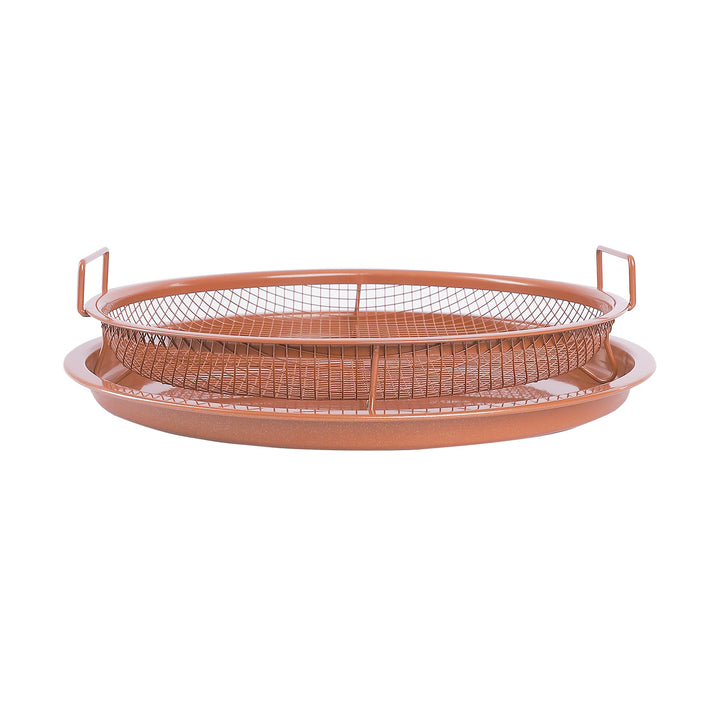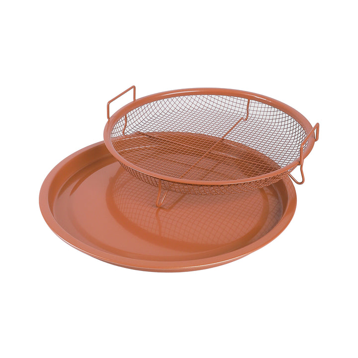 • طقم 2 قطعة يشمل مصفاة تقلية وصينية مستديرة متكاملة للاستخدام مع الفراير.