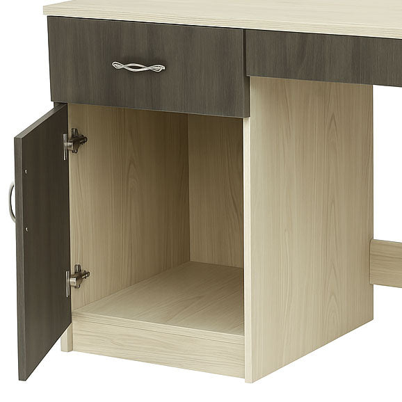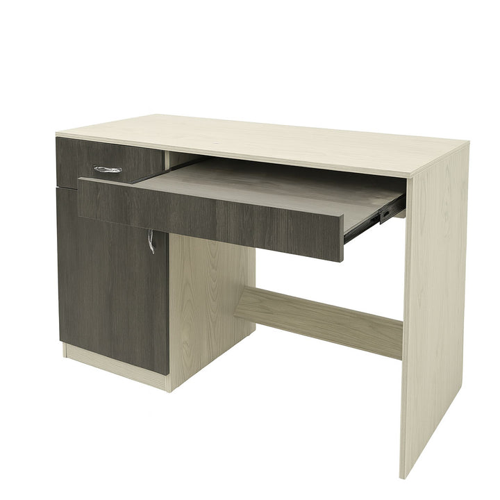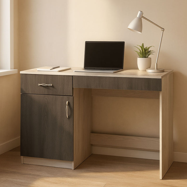 مكتب "إنجاز": الحل العملي المتكامل للمساحات الحديثة. مكتب بعرض 120 سم مصنوع من خشب MDF المتين، يتميز بتصميم أنيق ثنائي اللون يجمع بين الخشب الفاتح والداكن. يوفر المكتب سطح عمل واسع ووحدة تخزين جانبية متكاملة تشتمل على دُرج وخزانة بباب لتنظيم الملفات والأدوات بشكل فعال وكامل. إنه الخيار الأمثل للمكاتب المنزلية وغرف الدراسة التي تحتاج إلى الحد الأقصى من التنظيم بأقل مساحة ممكنة.