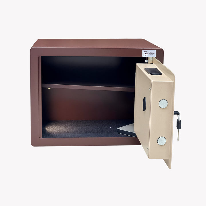 حافظ على أمان مقتنياتك الثمينة مع خزينة الأموال الفندقية GDA بقياس 30 سم. تتميز بتصميم متين وخفيف الوزن، مثالية للاستخدام في الفنادق أو المكاتب أو المنازل. تأتي بنظام قفل إلكتروني عملي مع مفاتيح طوارئ لضمان الأمان وسهولة الاستخدام. حجمها المدمج يناسب المساحات الصغيرة دون التنازل عن مستوى الحماية.