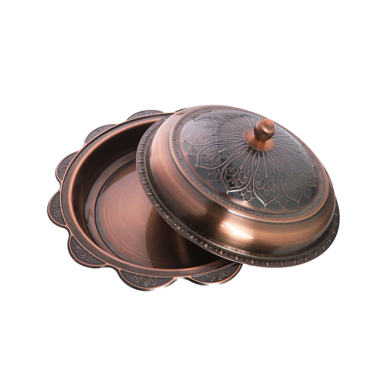 صينية كبسة فاخرة مصنوعة من النحاس عالي الجودة، بمقاس 42 سم، تتميز بتصميم تراثي أنيق ولمسة شرقية تضيف فخامة لأي مائدة. مثالية لتقديم الكبسة، الأرز، المشاوي أو الأطباق الشرقية في المناسبات والعزائم، وتجمع بين المتانة والمظهر الجمالي.