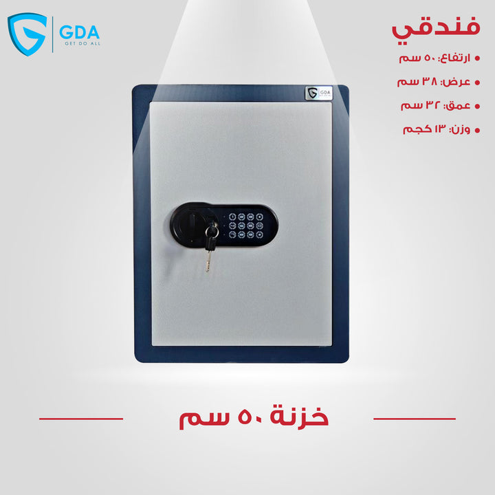 خزينة أموال فندقية GDA بقياس 50 سم هي الحل المثالي لتأمين مقتنياتك الثمينة سواء في المنزل، المكتب أو غرف الفنادق. تأتي بتصميم معدني متين ونظام قفل إلكتروني يوفر حماية عالية، مع مفاتيح طوارئ للفتح اليدوي. حجمها العملي يسمح بتخزين الأموال، المجوهرات، المستندات والأجهزة الصغيرة بأمان تام.