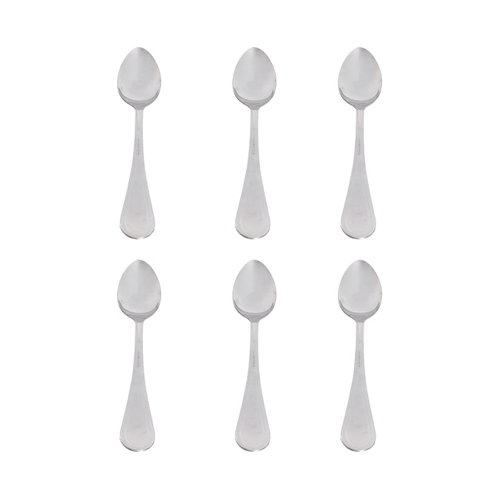 طقم مكون من 6 ملاعق ديسير بحجم صغير يناسب تقديم الحلويات والمشروبات الساخنة.
