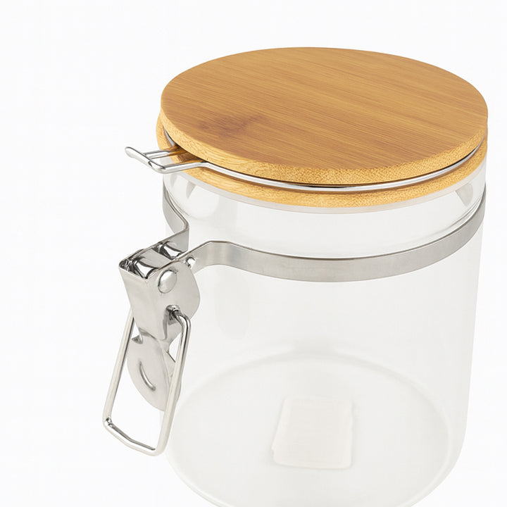 أضيفي لمسة من التنظيم والأناقة إلى مطبخك مع برطمان التوابل الزجاجي بغطاء خشب كلبس مدور – موديل 279. تصميم أنيق وعصري يجمع بين الزجاج الشفاف والغطاء الخشبي الدائري المزود بقفل معدني (كلبس) محكم يحافظ على نضارة التوابل. حجمه الصغير يجعله مثاليًا لتخزين البهارات الأساسية بطريقة عملية وتوفيرية للمساحة، كما أنه خيار مثالي للطاولات أو الرفوف المفتوحة.