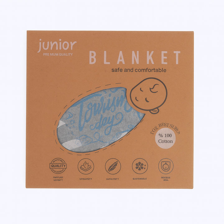 كوفرتة بيبي جونيور قطن مطبوع 100%، موديل 2-2107-25، بلون رمادي × بترولي، ناعمة وآمنة بتصميم أنيق يناسب راحة طفلك اليومية.