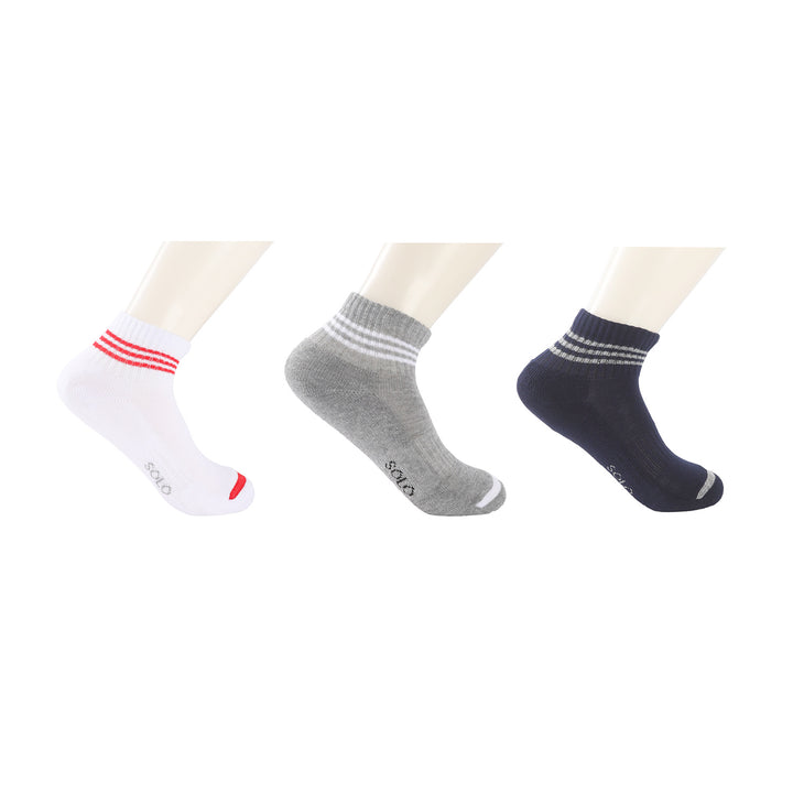 وفّر الراحة والحماية لطفلك مع شراب الأولاد ساق قصير نص فوطة – عبوة 3 قطع. تصميم عملي ومتين مناسب للاستخدام اليومي، مع خامة ناعمة توفر امتصاص جيد للعرق ودعماً للقدم طوال اليوم.
