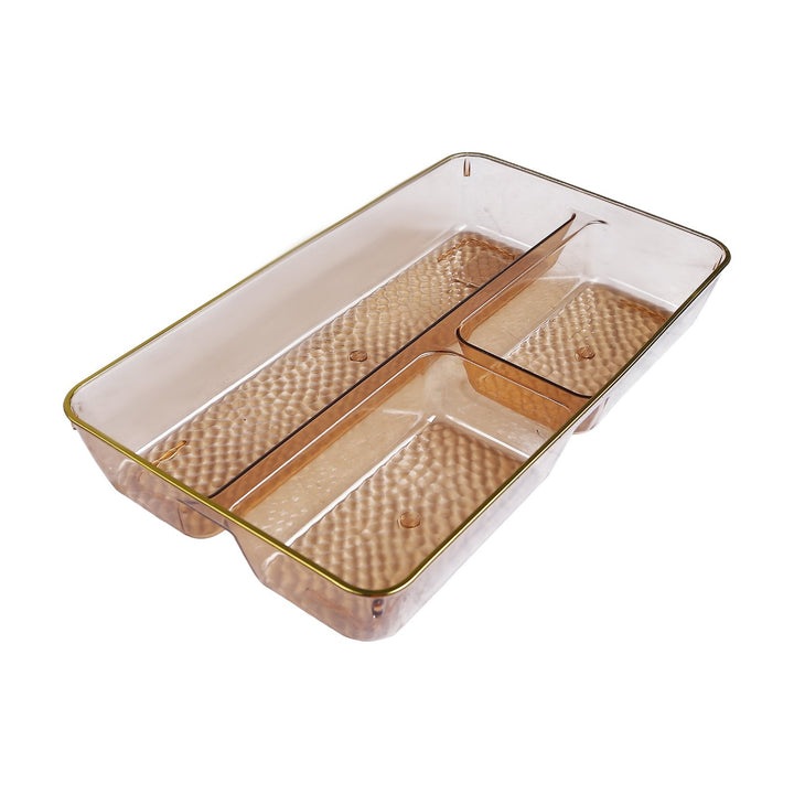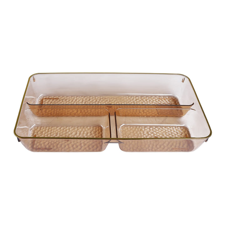 منظم ثلاجة شفاف اكريلك اطار ذهبي 26.5 سم موديل 16109 ، حافظي على ترتيب ثلاجتك بأناقة مع منظم الأكريلك الشفاف بتصميم عصري مميز بإطار ذهبي أنيق، مقسم إلى 3 عيون لتسهيل فصل وتنظيم الأطعمة والمكونات المختلفة.