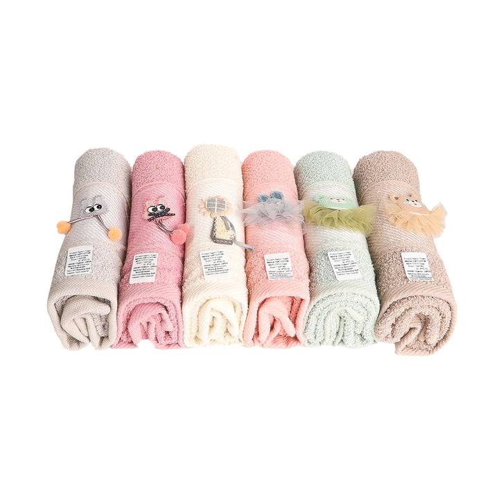 طقم فوطة أطفال من دباديبو مكون من 6 قطع بألوان جذابة ومبهجة، مصنوع من خامة قطنية ناعمة وآمنة على بشرة الأطفال. تصميم عملي ولطيف يناسب الاستخدام اليومي بعد الاستحمام أو أثناء تغيير الملابس، ويضفي لمسة من المرح على روتين الطفل اليومي.