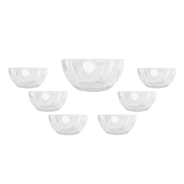 مجموعة سلطانيات زجاجية مزخرفة 7 قطع بودينج ريا - أوشن تجمع بين الأناقة والعملية لتقديم الحلويات والسلطات بأناقة على مائدتك. تتميز بتصميم مزخرف فريد يضفي لمسة جمالية على كل مناسبة، مصنوعة من زجاج عالي الجودة مقاوم للكسر ومناسب للاستخدام اليومي.
