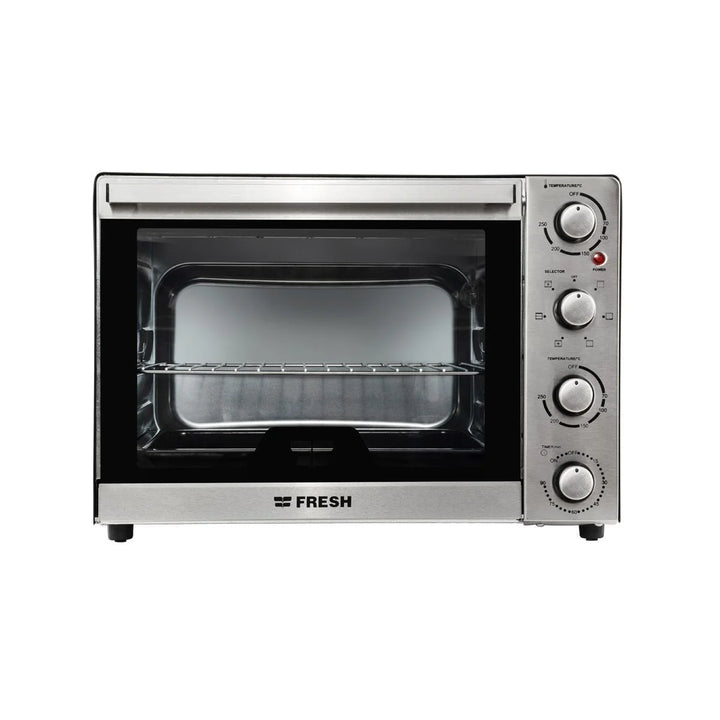 فرن كهربائي فريش أيليت 65 لتر FR-6503RCL، 2200 واط، مزود بشواية ومروحة، شبكتا قلي ودوران، مؤقت 90 دقيقة، تحكم في درجة الحرارة 100-250°، 7 مستويات للطهي، إضاءة داخلية، تصميم موفر للطاقة وعملي، ملحقات للشواء والقلي.